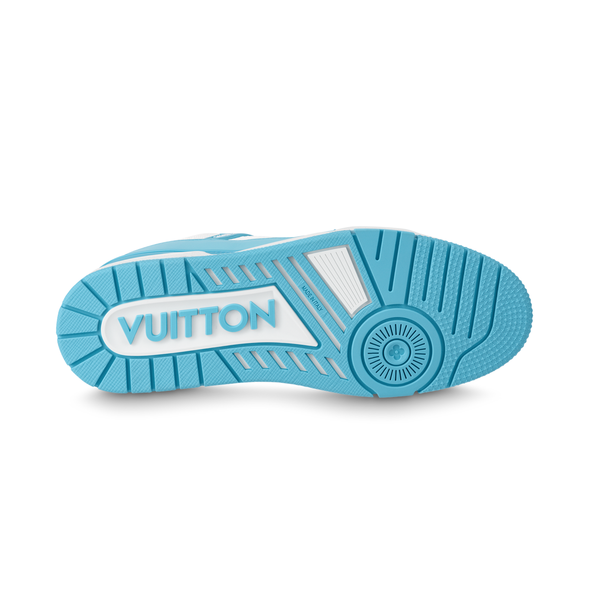 This edition of the iconic LV Trainer sneaker brings together smooth calf leather and grained calf leather embossed with Louis Vuitton's signature Monogram pattern. Originally designed by Virgil Abloh and inspired by vintage basketball sneakers, this cult model is reimagined in soft pastel colors that emphasize the intricate construction of its upper, which requires seven hours of meticulous stitching. A must-have for those who appreciate refined craftsmanship and modern luxury.