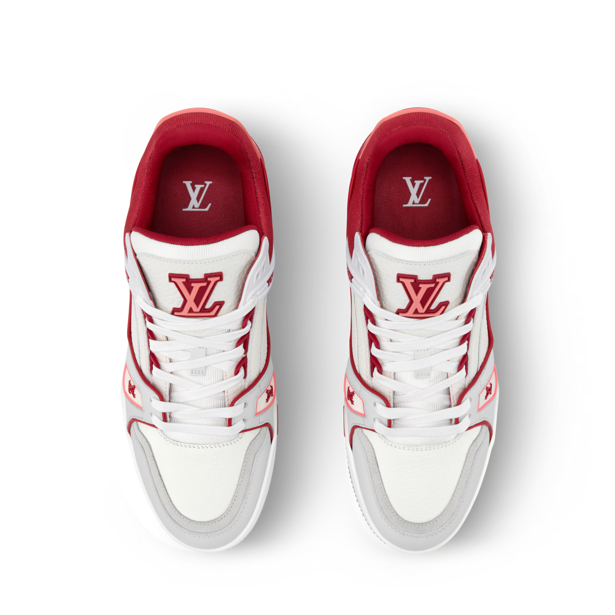 This two-tone interpretation of the iconic LV Trainer brings a refined update to Virgil Abloh’s basketball-inspired silhouette. Crafted from grained calf leather, the sneaker pairs a sleek red palette with signature House detailing. Rubber LV Initials and Vuitton signatures enrich the upper, while the technical outsole is finished with Monogram Flower motifs for a distinctly Louis Vuitton touch. Designed and made in Italy, it combines elevated craftsmanship with sporty heritage.