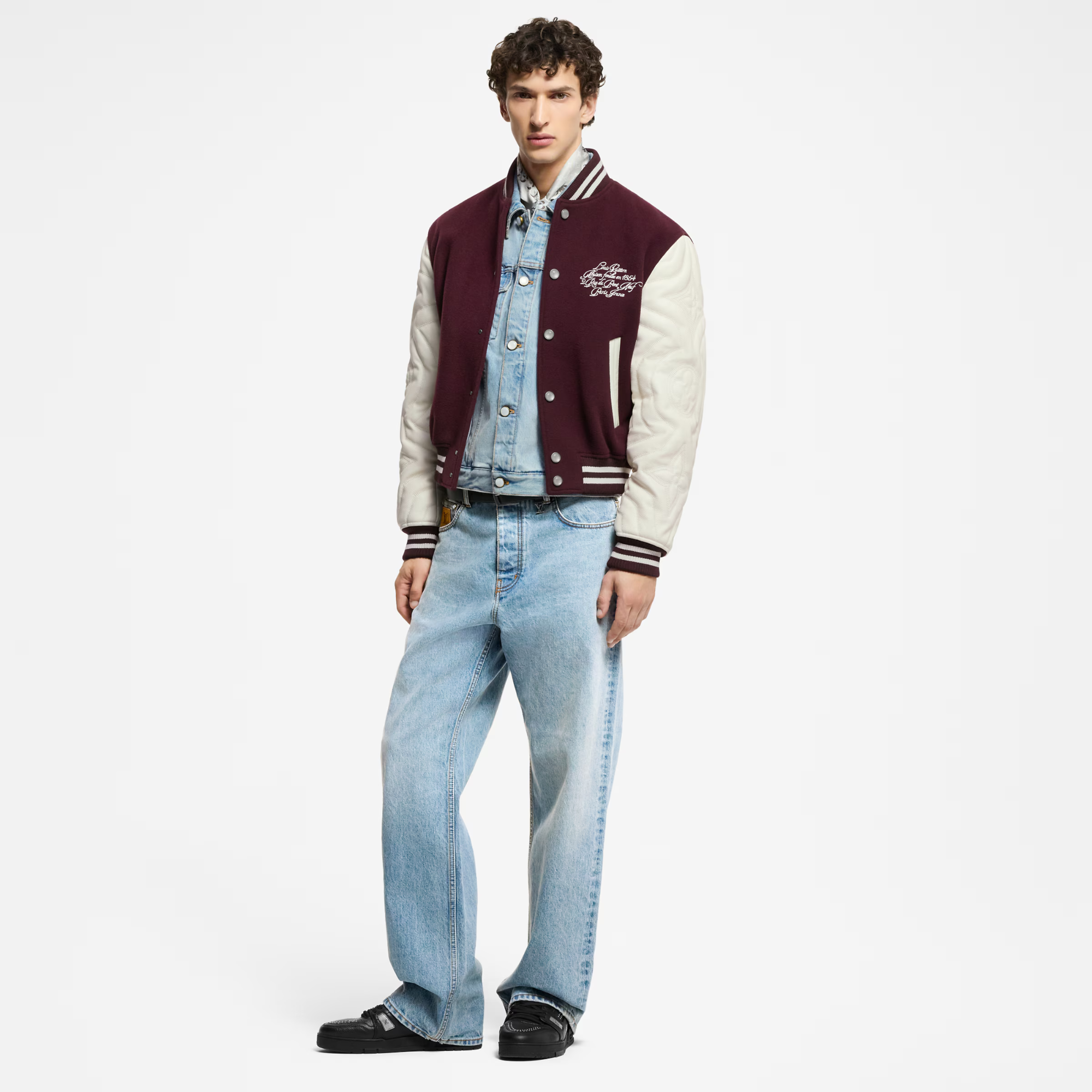 The iconic LV Trainer Sneaker, originally designed by Virgil Abloh, is reimagined in luxurious grained calf leather with striking silver-toned metal details, including tiny studs and the LV Initials. Inspired by vintage basketball sneakers, this model features the LV script signature on the side and a technical rubber outsole adorned with Monogram Flowers, blending timeless elegance with modern craftsmanship.